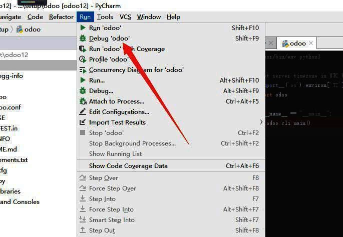然后点击顶部的Run菜单,选择Debug选项,如下图所示