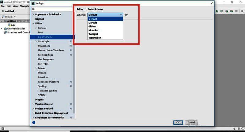 在弹出的Settings窗口中点击【Editor】,选择【color Scheme】。