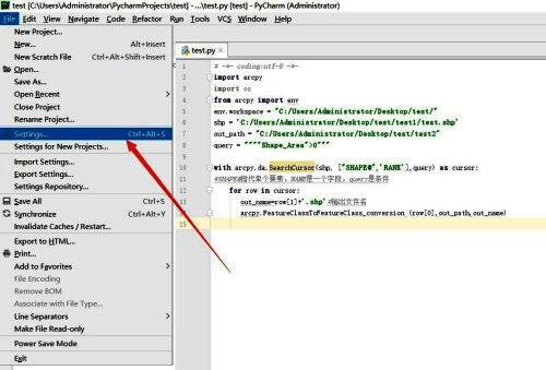 首先,在电脑上打开pycharm软件,依次点击菜单栏【file】-【settings】,进入设置中心。