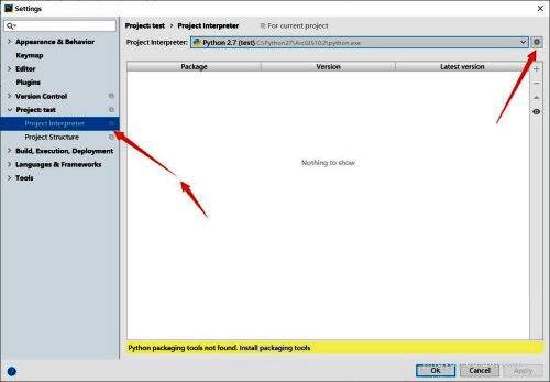 点击project下的project interpreter,可以看到当前编译器为Python2.7,点击右上角的小齿轮按钮,选择add。