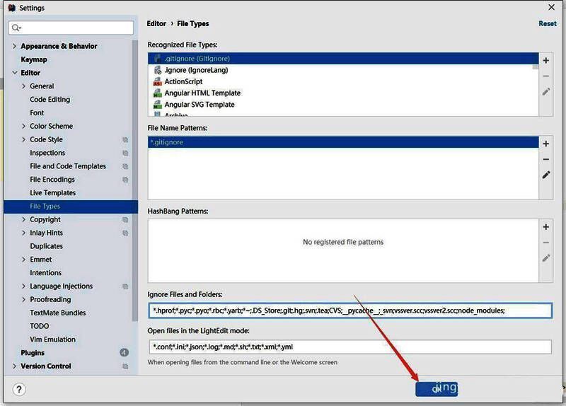 在下面的ignore files and folders输入框里面,粘贴node_modules;