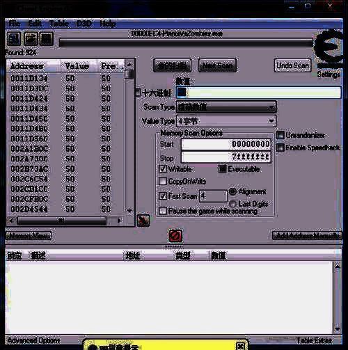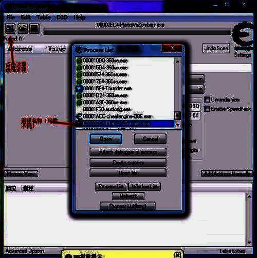 第一步:首先,打开CE修改器,打开进程。这里以PVZ(植物大战僵尸)为例。
