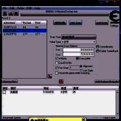 第五步:还有3个,但是数值为25的只有1个。把数值为25的地址双击以移动到修改区。