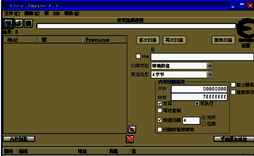 打开CE,如果出现一个对话框请点否,那是启动教程软件的。