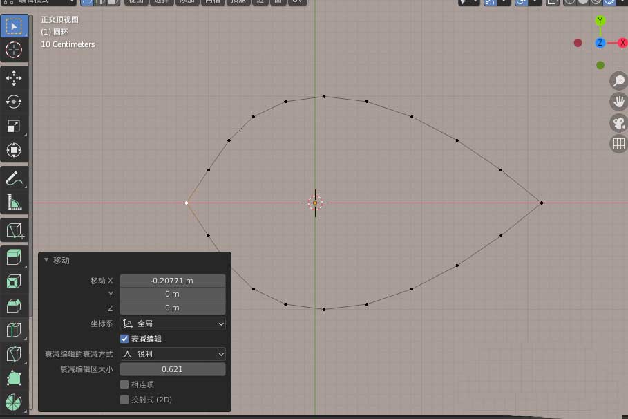 6、选中圆环上的顶点,移动编辑到如下图形状,如下图