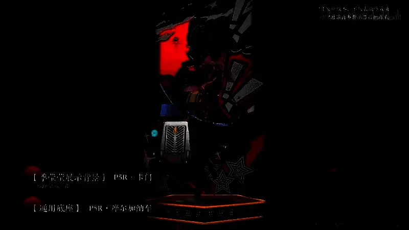 【P5R·JOKER面具】、【P5R·PANTHER面具】、【P5R·PANTHER的尾巴】、【P5R·VIOLET面具】、【P5R·NOIR面具】、【P5R·NOIR的帽子】、【暗色镜框】