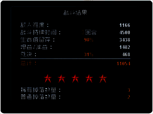 第五回合,前两个火锤用火花四溅避免将boss打死,如果第二个火锤可能打死则使用锻造,最后管狐用重度割伤刷处决分数。回合结束boss被击败。
