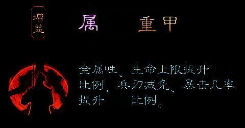 全属性、生命上限提升人量比例。兵刃减免、暴击几率提升中量比例