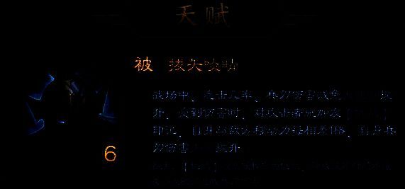 战场中连击几率、兵刃伤害减免大比例提升,受到伤害时,对攻击者施加友【仇敌】印记,自身与敌方移动力每相差1格,自身兵刃伤害少量提升。