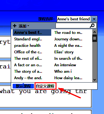 1、打开金山打字通“英文打字”后点击“文章练习”,点击右上角“课程选择”选择“自定义课程”,如下图所示。