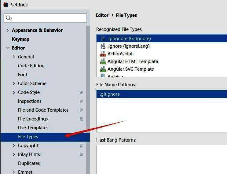 进入editor-file types页面。
