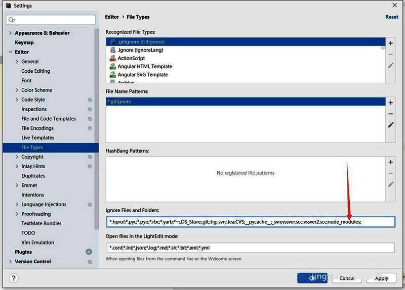 在下面的ignore files and folders输入框里面,粘贴node_modules;
