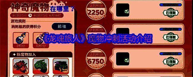 魔物图鉴的推出正好卡在战力排行结算这天,又是添了把火。下面是小编给大家带来的《龙魂旅人》魔物冲刺活动介绍,感兴趣的小伙伴们一起来看看吧。