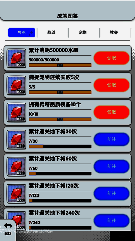 每日必查:成就图鉴领取遗漏的水晶奖励。