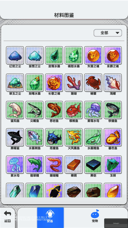 可以查看到游戏内的所有材料种类,包括用于装备强化,精炼,潜能释放,以及宠物提升等。