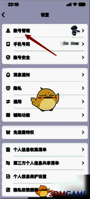 1、进入到手机QQ设置窗口,找到【账号管理】。