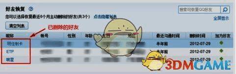 4、打开好友恢复页面后,你可以查看到最近6个月主动删除的好友。