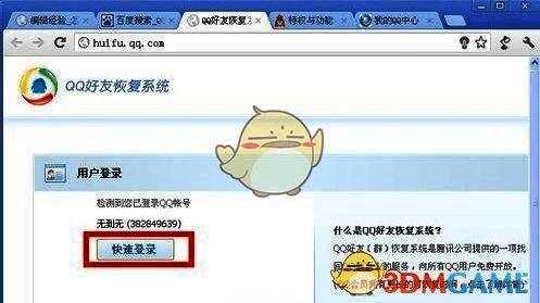 1、打开QQ好友恢复系统并登陆需要恢复好友的QQ账号。