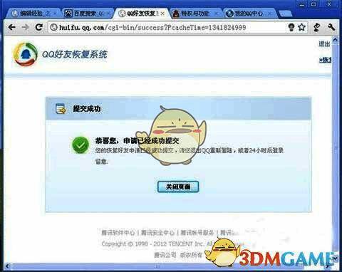 3、提交成功,退出QQ重新登陆,或者24小时登陆留意。