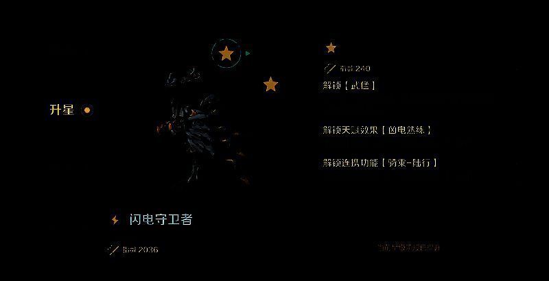 既然宠物升星代价如此巨大,那么这项功能具体有什么用呢?如图中所示,通过升星,玩家可以为自己的宠物觉醒非常强大的能力。就以闪电守卫者举例,第1个星星就能够让伤害直接提升15%,后面的能力提升更是非常巨大的。