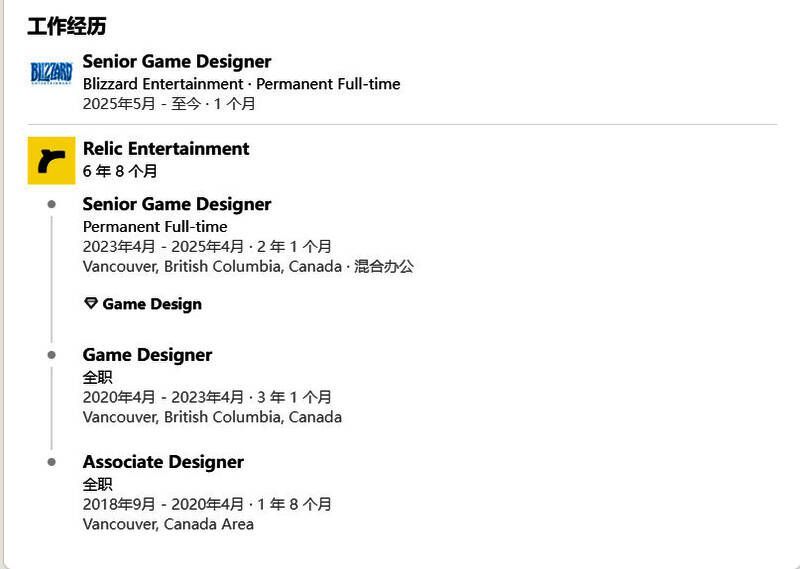 Rylan Koroluk在Relic任职七年时间,从助理设计师做起,锻炼两年后晋升为游戏设计师,后来又晋升为高级游戏设计师。