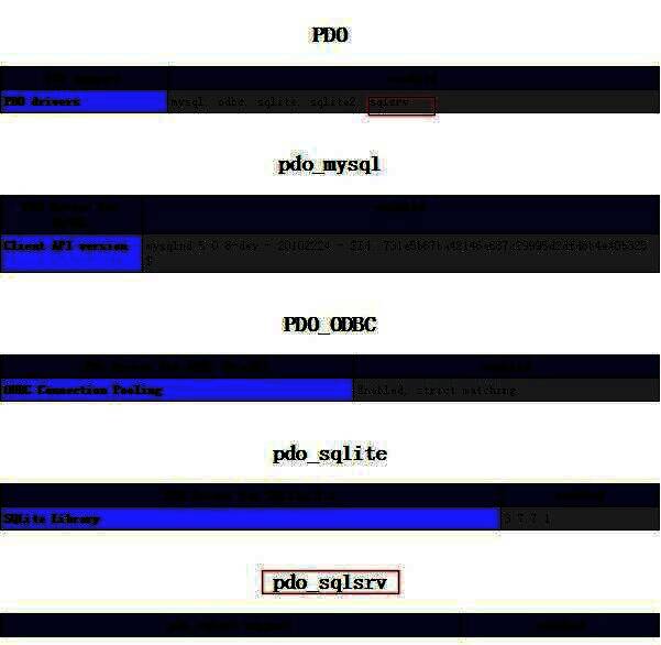 重启apache,查看phpinfo(),确保apache已经支持sqlsrv。如下图所示: