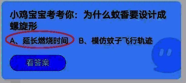 小鸡宝宝考考你:为什么蚊香要设计成螺旋形?这是支付宝蚂蚁庄园小鸡答题6月16日题目,支付宝小鸡答题是大家非常喜欢的活动,大家获取饲料就可以喂养小鸡领取更多的蛋去帮助更多的人了!今日正确答案是【延长燃烧时间】,蚊香设计成螺旋形的主要目的是延长燃烧时间。螺旋结构使蚊香缓慢均匀燃烧,一盘可使用整晚,同时减少折断风险,使用更安全方便。