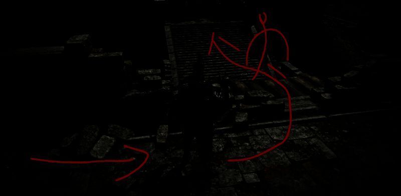 打完下水道boss之后上楼拿buff开城门,之后跳到河道里,往[图一]的位置走,这里固定会有一个上升气流,而且大概率会有提升卢恩获取量的buff。