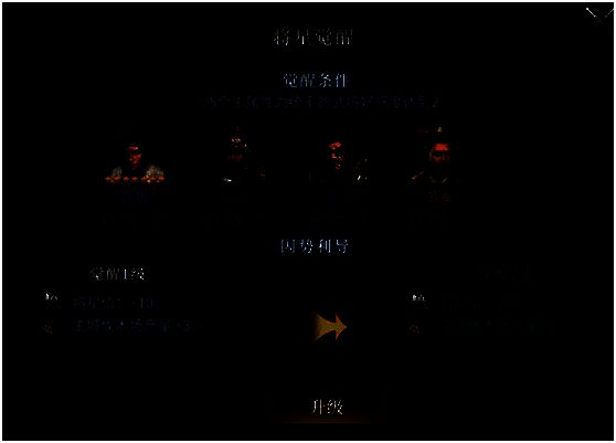 将星组合可以持续进行升级,获得重复的武将或进阶了兵法之后,达成更高级组合的条件,进行升级便可以获得更高的城池收益。