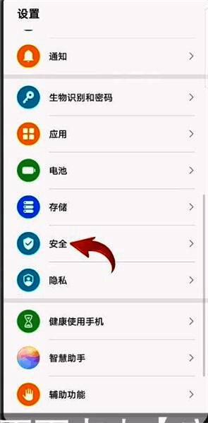 1、首先打开手机系统【设置】,然后下拉页面点击【安全】选项。