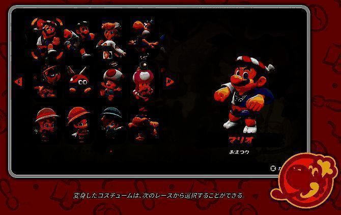 近期有媒体提前试玩《马里奥赛车:世界》,发现有些角色无法进行角色换装,经过咨询任天堂官方后,证实了能够换装的只有马里奥、路易吉和公主等等主要角色,新参战的“NPC选手”们是无法更换的。