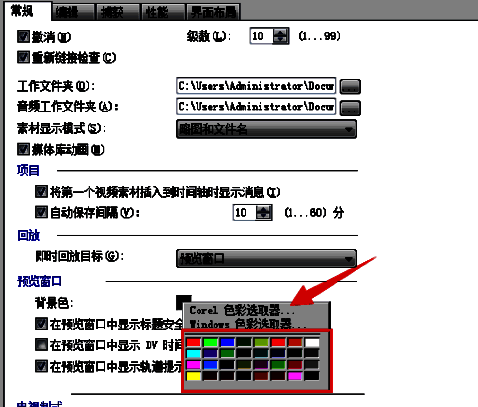 在打开的参数选择窗口中,我们会看到有一个预览窗口——背景色。