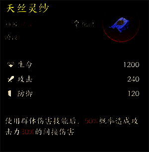 天丝灵纱:西施的2个技能均为群体输出,携带天丝灵纱可以补充我方阵容输出