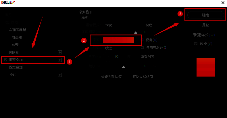 2.打开图层样式的编辑窗口,在渐变叠加一栏中设置橙色渐变颜色,点击确定保存