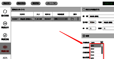 将音频文件添加进来后,在右下角分割格式中选择需要的格式;
