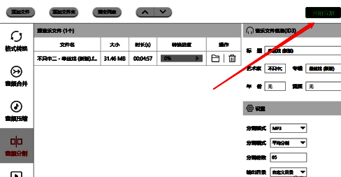 打开软件,在左侧选择“音频分割”功能,将需要处理的音频拖拽到软件中;