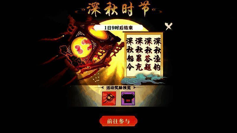 活动内容:「深秋时节」活动包含深秋渔钓、深秋答题、深秋累充、深秋船令四项内容