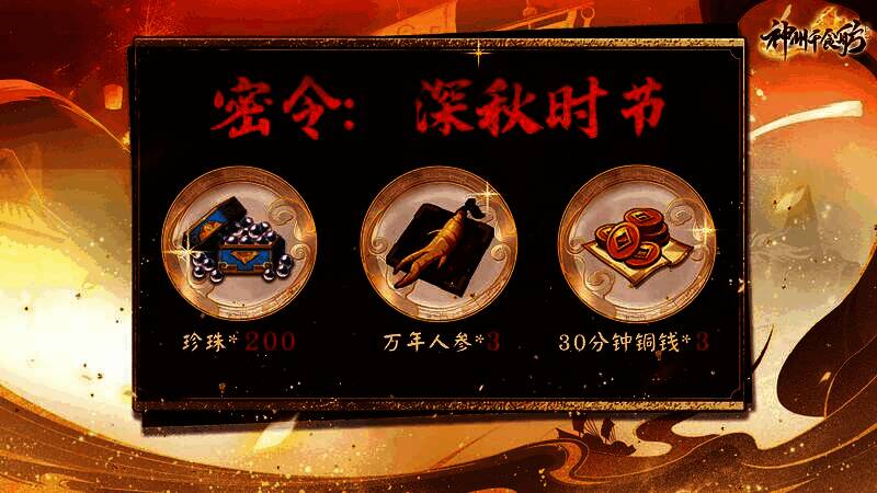 奖励详情:珍珠*200,万年人参*3,30分钟铜钱*3