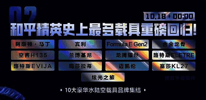 载具方面,《和平精英》推出史上最多载具重磅回归活动,十大豪华水陆空载具品牌首次集结。陆地上,集齐了阿斯顿·马丁、宾利、兰博基尼、路特斯、迈凯伦、玛莎拉蒂(按首字母排序)等顶尖豪华座驾;空中则有硬核空客H135和趣味十足的炫光之旅,水中的赛莎KL27也再次于河流、海域制霸。
