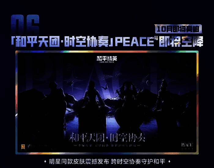 「和平天团·时空协奏PEACE4」明星同款游戏皮肤也即将在10月亮相,让诸位广受玩家喜爱的明星特种兵穿越游戏世界,跨越时空守护和平。究竟能get哪些明星同款呢?我们拭目以待。
