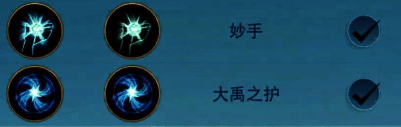 少侠在特技的选择上,与特效方案思路相似,【妙手】能够提升治疗能力为快速补足团队状态,【大禹之护】赋予的减伤效果能救少侠于水火之中,从而力挽狂澜赢得战斗胜利!