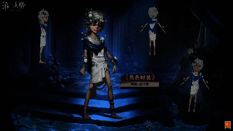 他的白发与轻纱都圣洁而纯粹,而那条湖蓝色的绸缎是他身上最明亮的色彩,似乎来自于他所眷顾之人。湖中生长的藤蔓仿佛是他身躯的一部分,缠绕在他腕间生出锐利的形状,能带他去往任何地方。