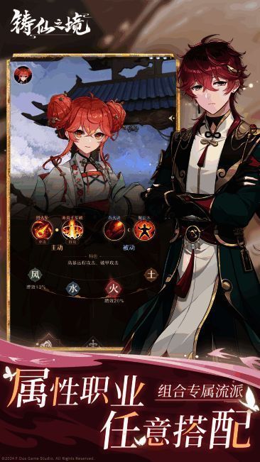 游戏内含风、火、雷、水、土五类元素与御剑、符咒、丹鼎三种职业,多种战斗流派相生相克,角色战斗站位任你安排,触发不同增益效果;培养完成的弟子将成为仙魂,均可选择上阵,巧思搭配适应不同的战斗场景,对局峰回路转,打破传统的数值卡牌、拒绝纯数值堆砌、拒绝推图刷关!