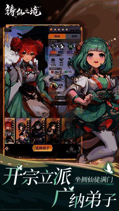 随机选项,自由育成,手持神器铸仙炉,协助弟子们从凡人期一路至化神,只需点击操作,即可体验类肉鸽式培养构筑过程!