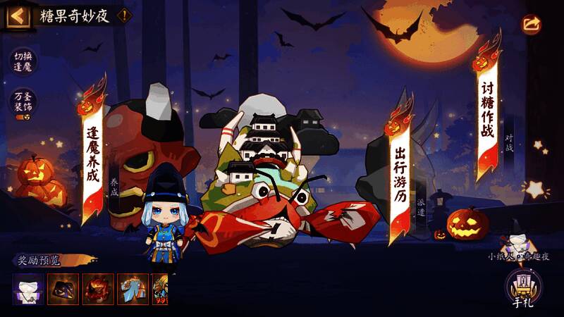 ※完成活动内每日任务与成就可获得【奇趣糖糖】,达到指定数量即可解锁手札中的奖励,领取万圣节主题小纸人皮肤【小纸人·奇趣夜】和成长道具奖励。