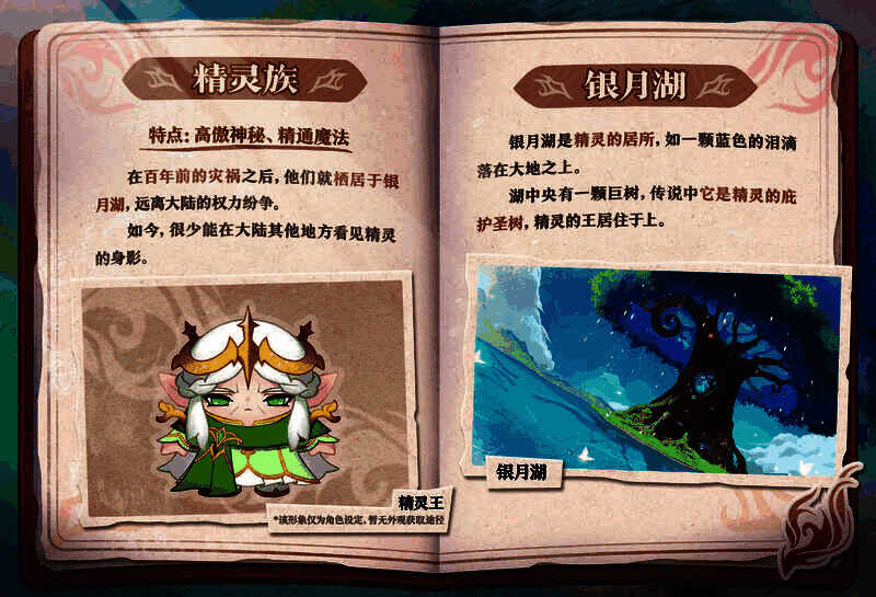 除此之外,这片大地还生活着其他的种族,比如高傲神秘、精通魔法的精灵族,他们现隐居于银月湖,以此远离大陆权力纷争。