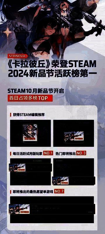 《卡拉彼丘》本就有不错的游戏底子,近日也是在国际化上动作连连。今年10月,卡拉彼丘国际服参加TGS东京电玩展,成为了海外玩家的目光焦点,展台前挤满了热情的日本玩家。国际服的测试版本也是上线了Steam,在10月的Steam新品节中取得活跃榜第一,许多知名海外二次元主播玩得直呼过瘾。