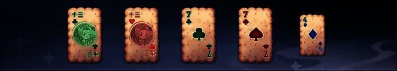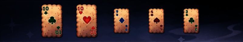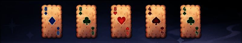 出牌不满足任何牌型,只取点数最高的饼干牌四张饼干牌,点数两两相同,即为双玉钩
