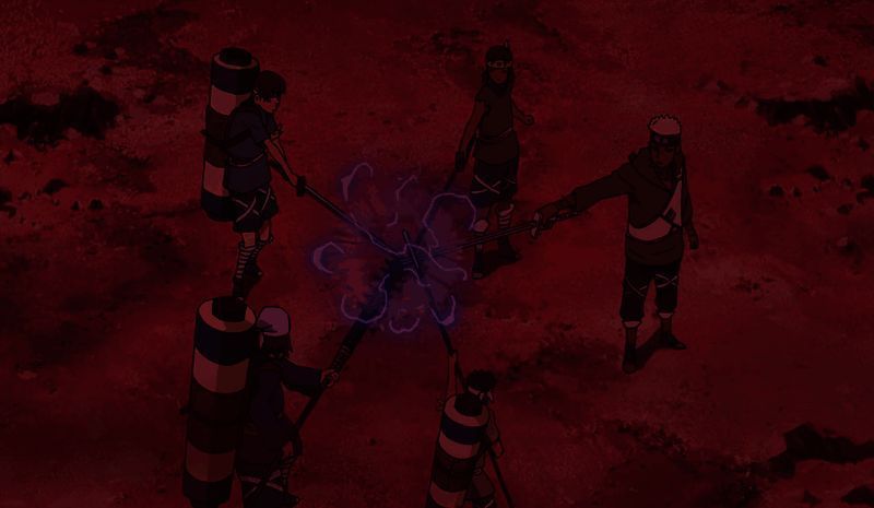 奥摩伊在第四次忍界大战,面对大量白绝时,会以剑快速地使出月牙形的大型斩击。