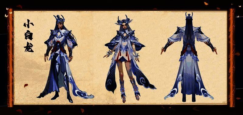 在那漫漫取经路上,还有一位不可或缺的角色,常被世人忽略,那便是唐僧的坐骑白龙马。此番联动时装原画中,他亦以独特风采,傲然登场。头顶之上,华丽的龙角熠熠生辉,这也昭示着他不凡的身份。上衣洁白如雪,纯净无瑕,其间点缀的蓝色与红色纹样,宛如天边云霞,护腕之处,金色与淡蓝色的搭配恰到好处,仿佛山川河流之精华,凝聚于此。